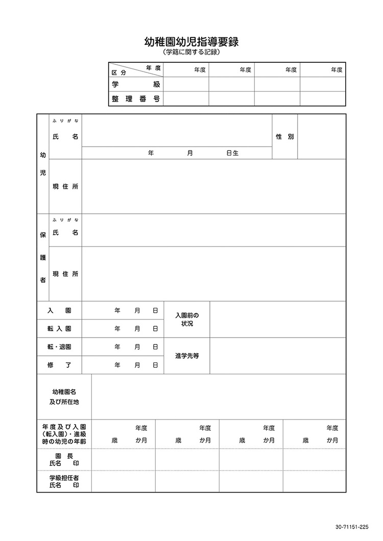 幼稚園幼児指導要録用紙2(100枚)学籍