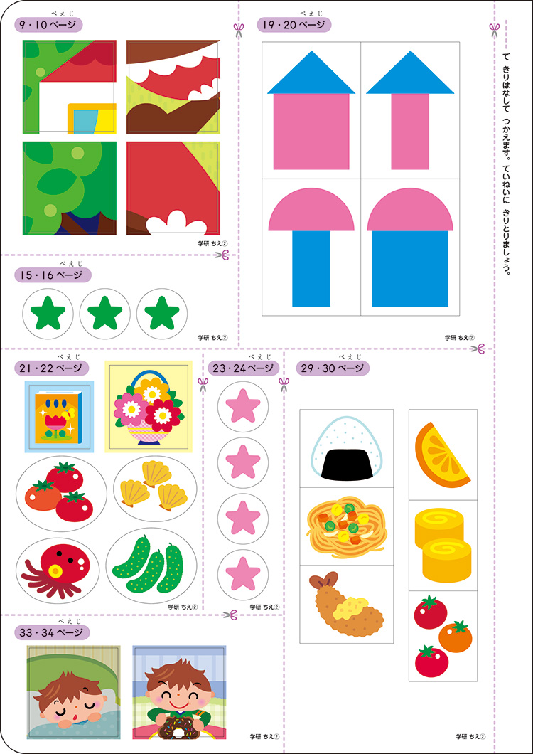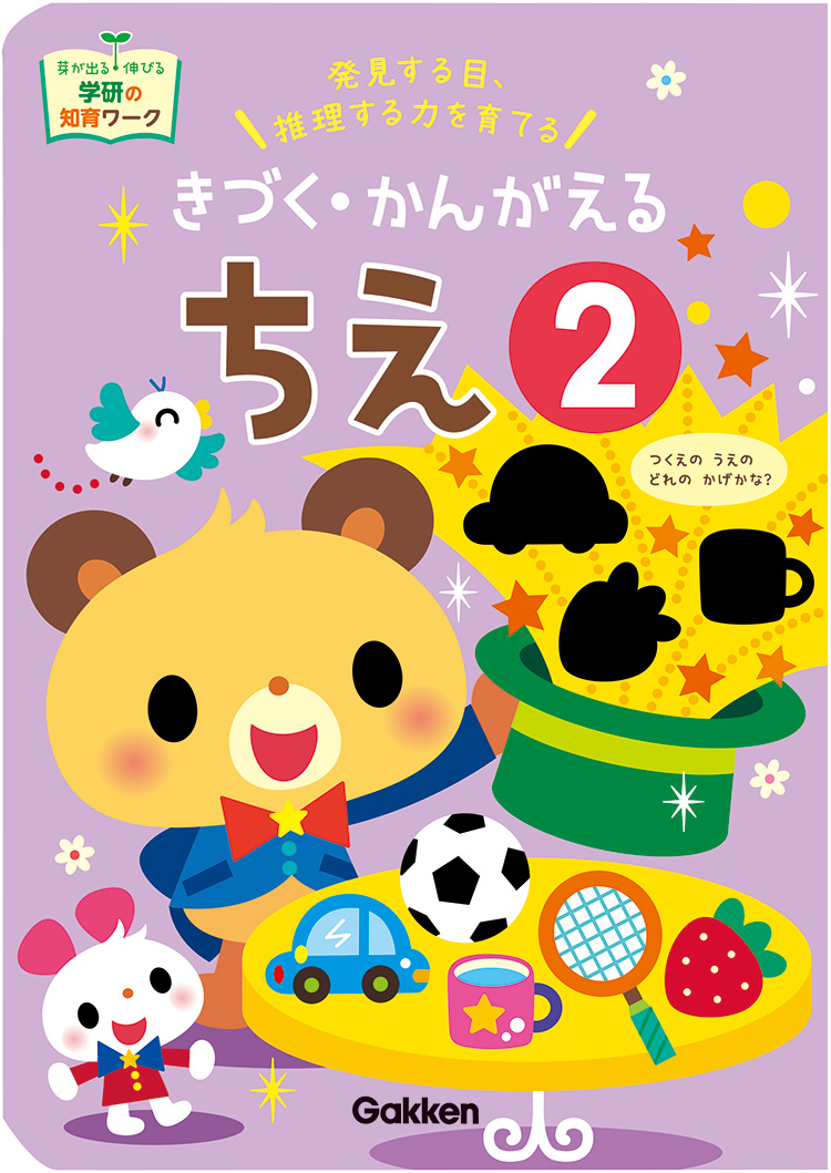 「気づく力」「考える力」を養い、発見する目、推理する力、応用する力を育てます。※学研の知育ワーク「かず」「ちえ」は公益財団法人日本数学検定協会が幼児を対象に実施している「かず・かたち検定」の推薦教材として認められました。