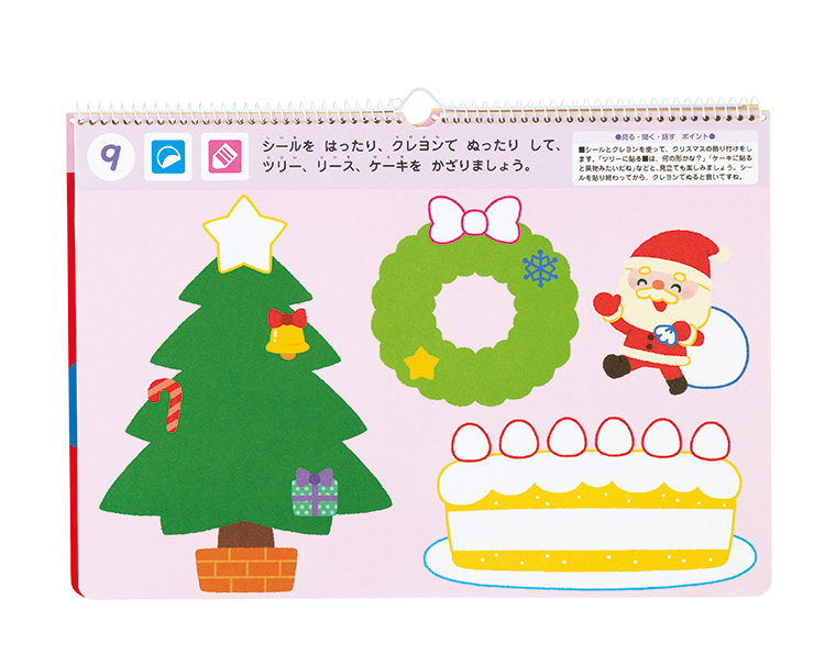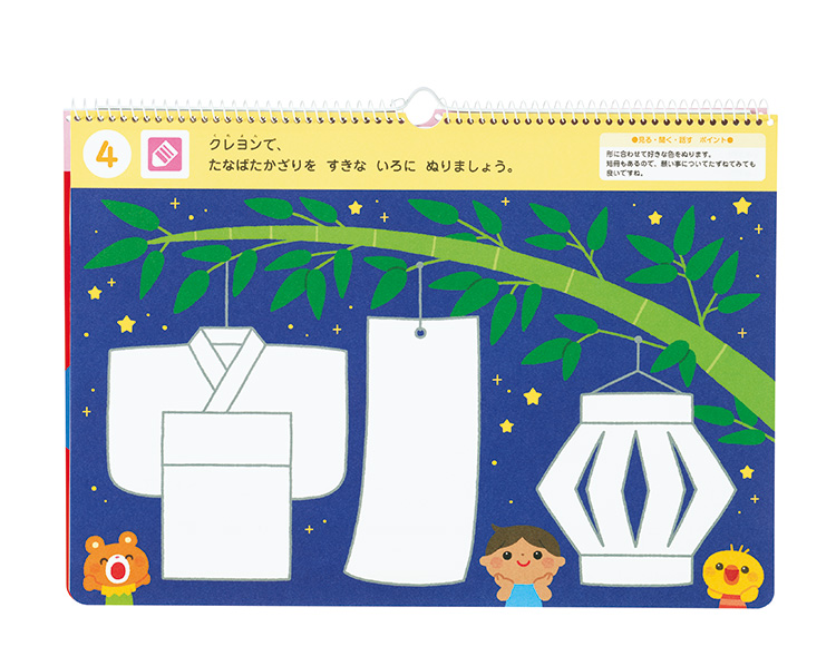 子どもたちが大好きなシールと、クレヨンを使って、「自分なりの表現」を楽しみます。季節と行事をテーマに構成されているので、行事の活動の前後に取り入れることができます。