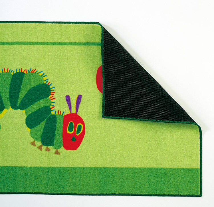 軽量で、洗濯機で洗えるはらぺこあおむしのマットです。玄関やクラスの入り口に置いて、かわいらしい雰囲気を演出します。へたりにくいナイロン仕様。裏面は滑り止め仕様です。
