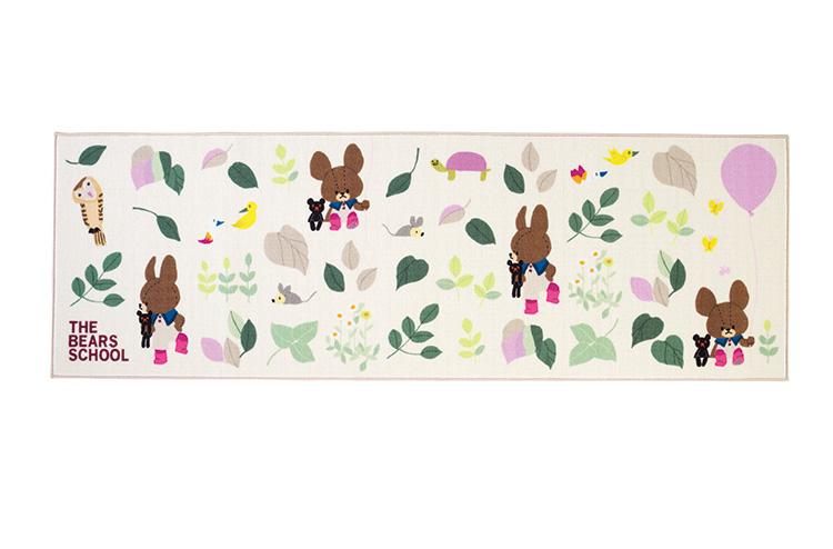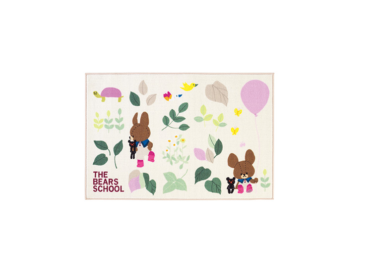 ジャッキーとフレンズが描かれたマットです。どこにでも馴染むナチュラルな色合いで、玄関やお部屋を明るく彩ります。へたりにくいナイロンを使用しており、洗濯機で洗うことができます。
