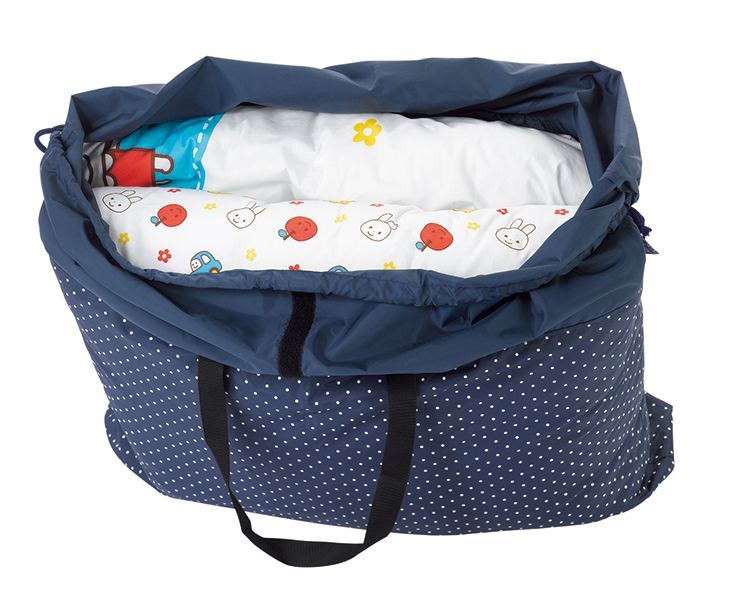 撥水加工生地使用の布団をすっぽり包むバッグです。名前が書けるネーム付。