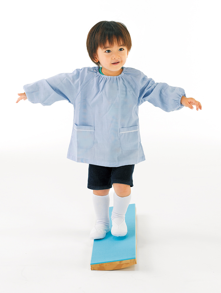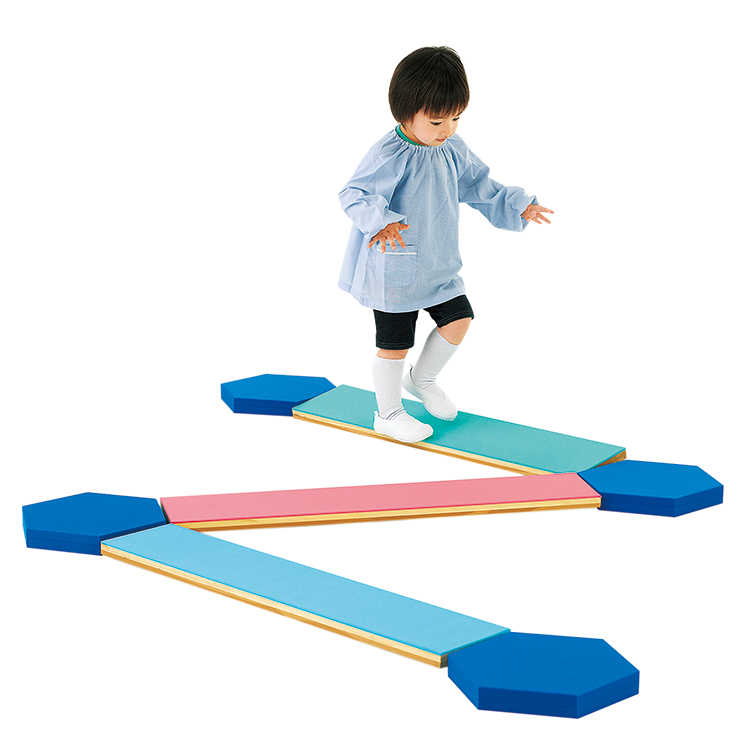 ゆらゆら揺れる道をバランスを取りながら歩いてみましょう。真ん中を歩くと揺れは小さく、端は少し大きく揺れることを知るでしょう。ベース基地にたどり着けば一安心、置く位置を変えると遊びの幅が広がります。