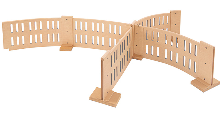 大きい保育室の間仕切りに便利な十字型支柱とT字型支柱が登場しました。