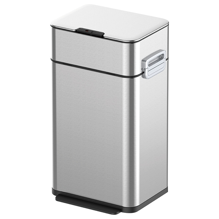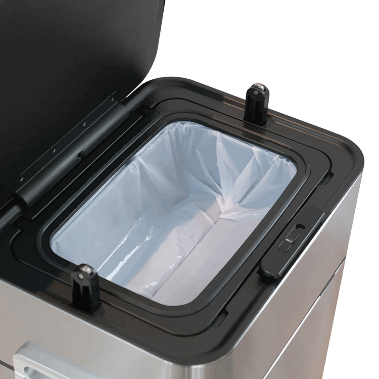 使い方はとっても簡単、ボタンを押してふたを閉じるだけ、入れたおむつが自動で下に落ちます。捨てたおむつが見えないから、毎回気持ちよく使用することができます。蓋の下にシャッター構造があり、ふたを閉じるとシャッターが開き、開けるとシャッターが閉まる仕組みになっています。