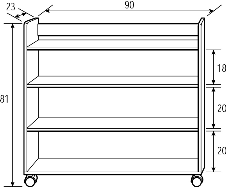 ●付属品:キャスター付き●材質:合板(内=アイボリー・縁=白)●寸法:23×90×81cm●重量:13.8kg