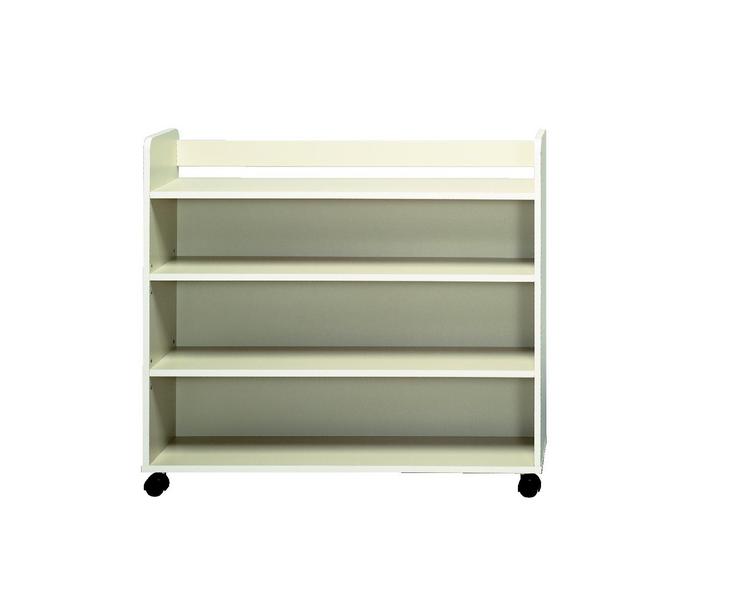 3歳児にぴったりの使いやすい教具棚です。日常生活用具を紹介するのに便利です。前面のキャスターはストッパー付なので、運ぶのに便利です。背面仕上