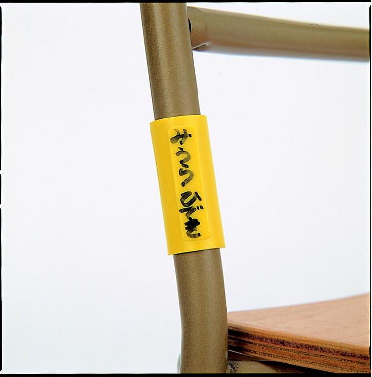 取り付け簡単なプラスチック製の名札。油性マーカーで記入します。