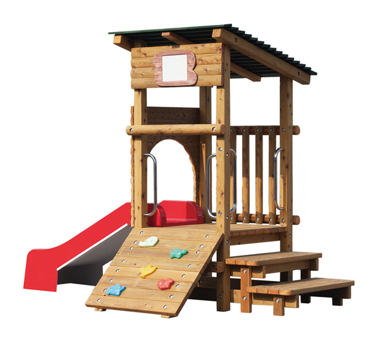 低年齢児向きの滑り台として最適です。コンパクトで場所を取りません。滑り台、クライムウォール、幅の広いステップが付属します。