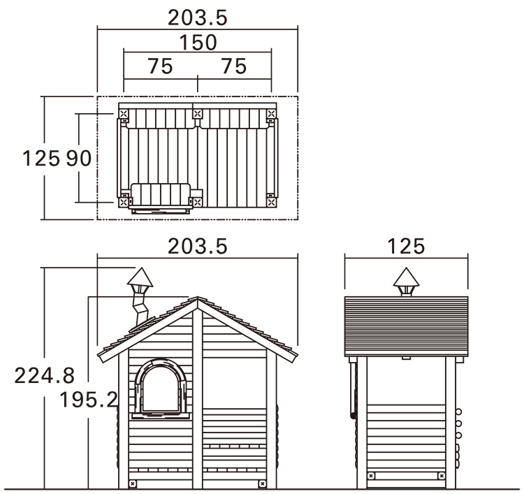 コンパクトで趣のあるハウス遊具です。内部にはベンチが付いています。