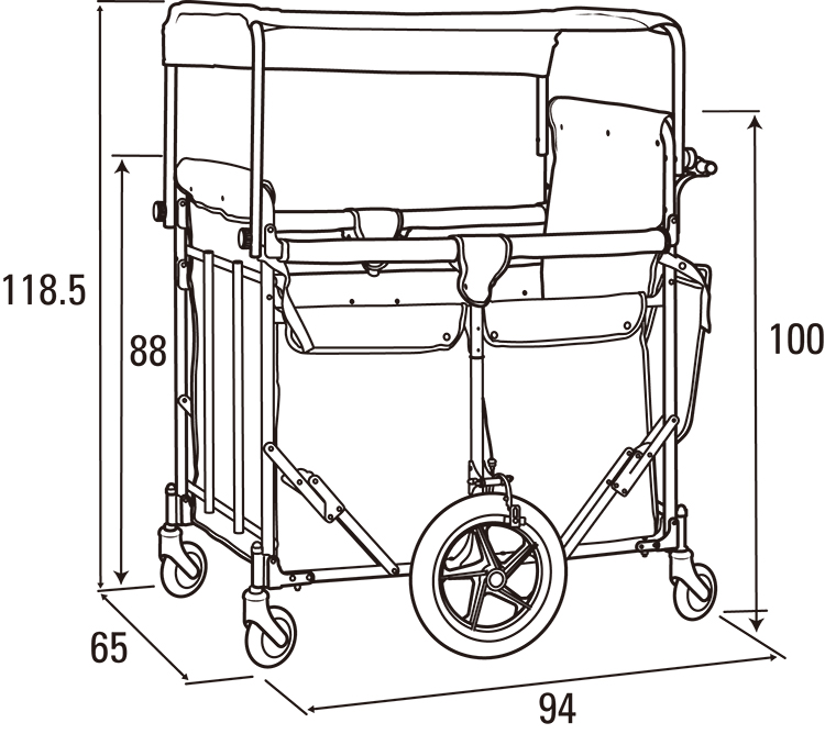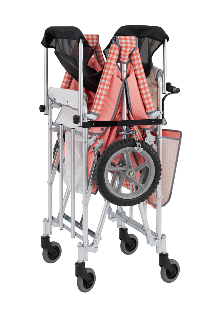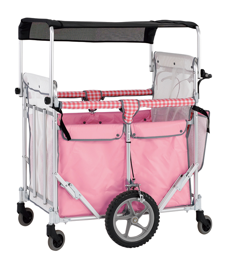 4~6人用。乗せやすい低床タイプです。底板一体式なので床板ごと折りたためます。ノーパンクタイヤ。