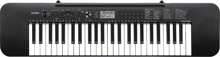 手軽に使える49鍵盤のキーボード。厚さ7.5cmとスリムながら、音域数、リズム数は100種類! 折りたたみのX型スタンド付
