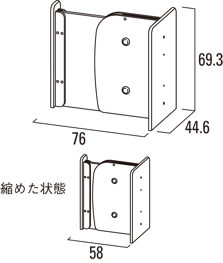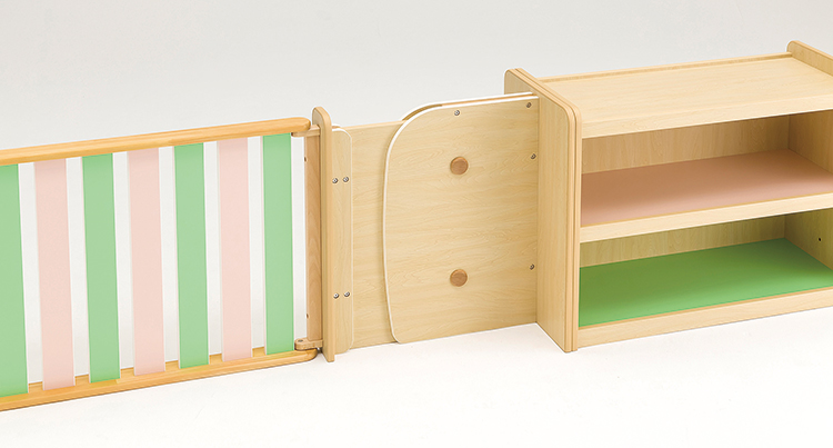 つながるラックシリーズのサークル、ロッカーと連結して間仕切りの設置寸法の調整に使用できます。間口は58~76cmの間で調節が可能です。