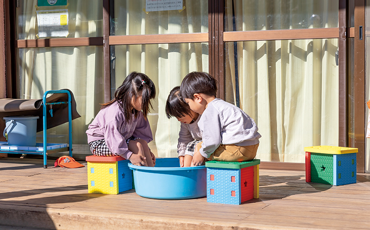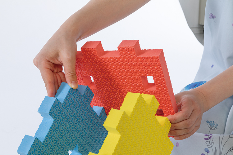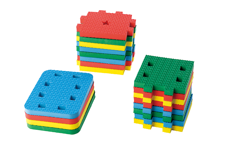 柔らかく、軽量なので持ち運びも安心です。水を吸わないため、プールサイドや水遊びでも使用できます。配色も4 色のパーツを自由に組み合わせることが可能です。表裏がないので、汚れ、キズが目立ってきたら裏返して組み立てることもできます。