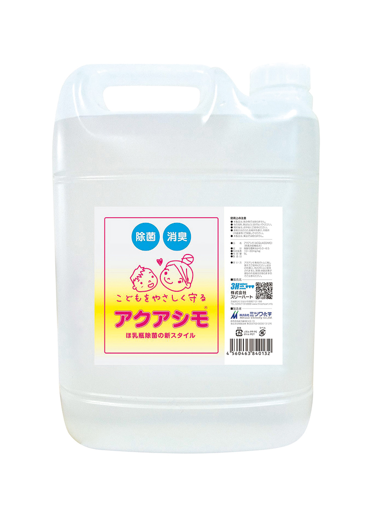 哺乳瓶、乳首、おもちゃ、衣服などの除菌や保育室などの消臭に使えます。食品添加物として厚生労働省より指定(官報公示第3378号)されていますので、安心してお使いいただけます。
