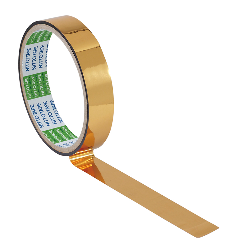 金属のようなキラキラと反射する素材のテープです。裏面にのりが付いているので、シールのように使えます。