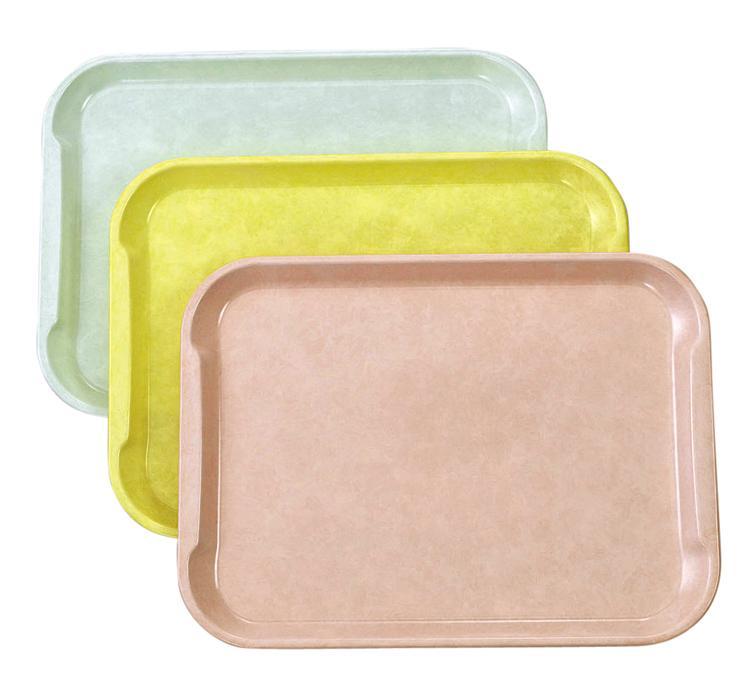 持ち手付のトレーですので、小さな子どもでも非常に持ちやすい形状です。軽くて丈夫なFRP 製。自動洗浄器、消毒保管庫にも使用できます。耐熱温度 130℃