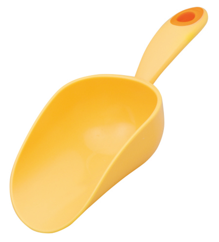 柔らかい材質を使用しているので強い力が加わってもクニュッと変形し、割れにくく丈夫なスコップです。ST規格。