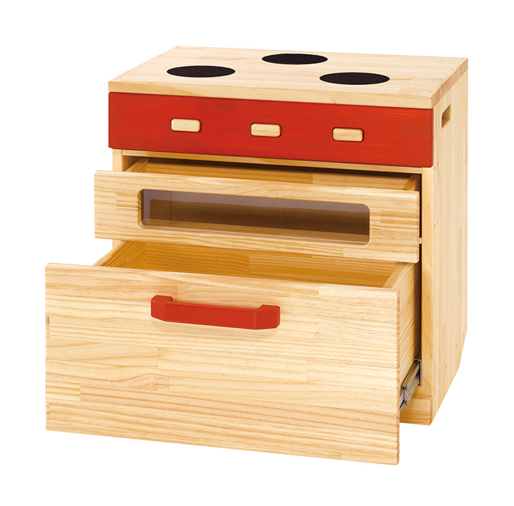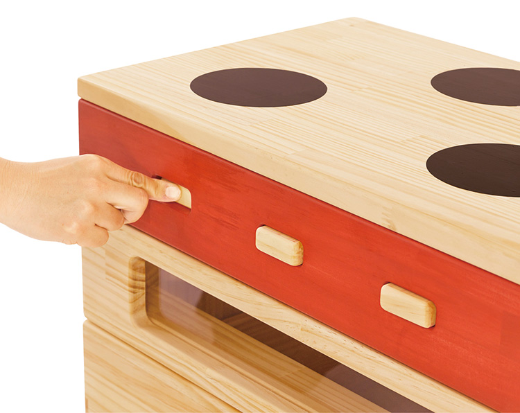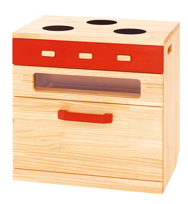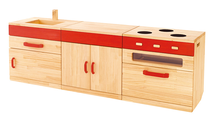 子どもたちの身体の発達や遊びの広がりを考慮した、ごっこあそびのための木製のままごとキッチンです。子どもたちの人数、保育室のスペースに応じて、自由に組み合わせることができます。