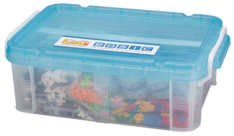 パーツ収納ケースに12色のLaQパーツと6種類のスペシャルパーツが入った大型のセットです。作り方の本に載っている全40種類に組み替えられます。