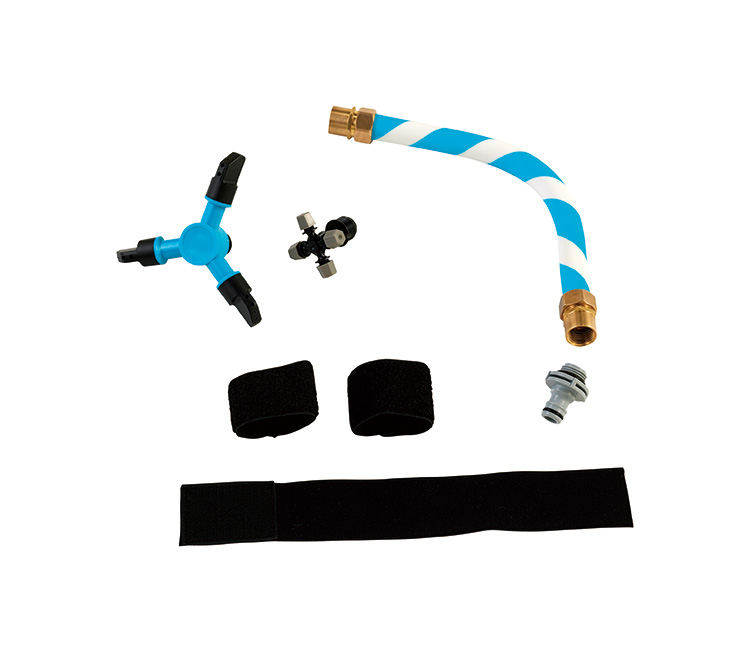 ●セット内容: フレキシブルアーム・ホース接続パーツ・散水プロペラ・ミストヘッド・固定ベルト1枚・固定バンド2枚