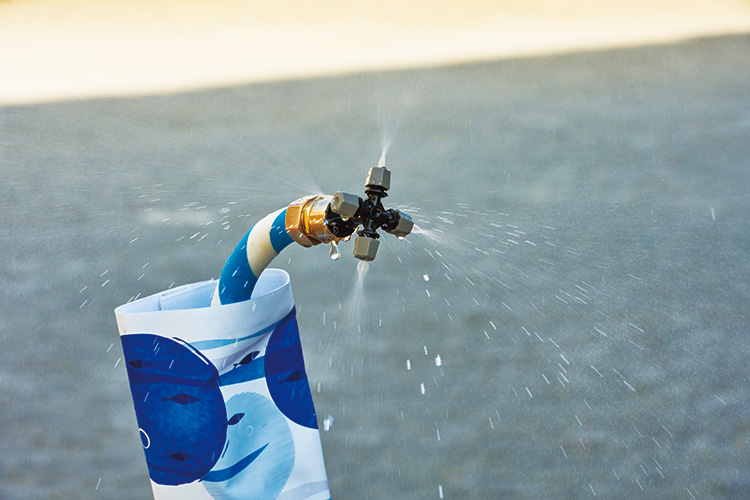 フレキシブルアームで自由に向きを変えられるスプリンクラーです。ヘッドをミストに変更して暑さ対策として使用することも可能です。固定バンドと固定ベルトを使用して、自由に好きな所に取り付けが可能です。