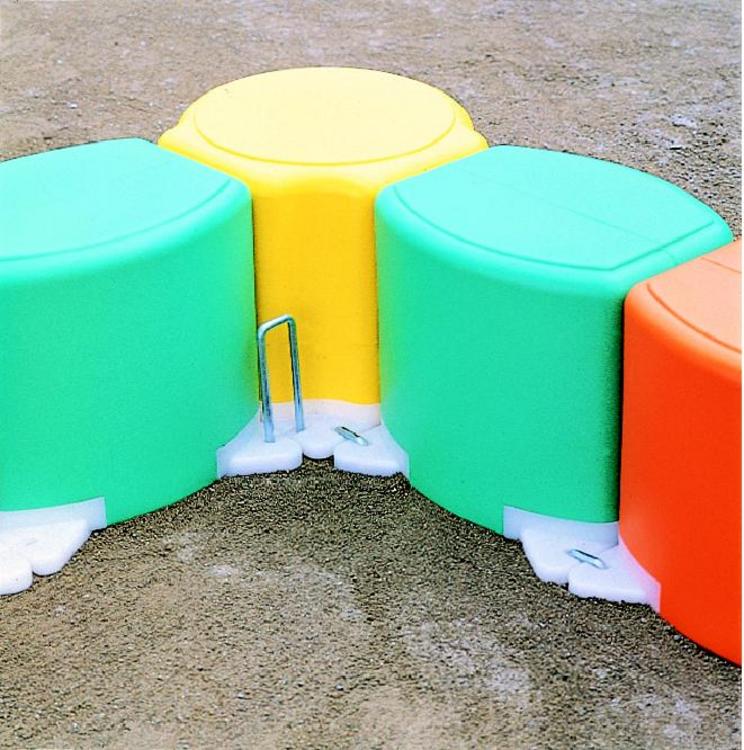 ユニットの連結ができたら、となり合ったユニットどうしを打ち込みアンカーで固定します。ずれたり、ゆがんだりすることもなく、埋め込み工事も不要です。 -