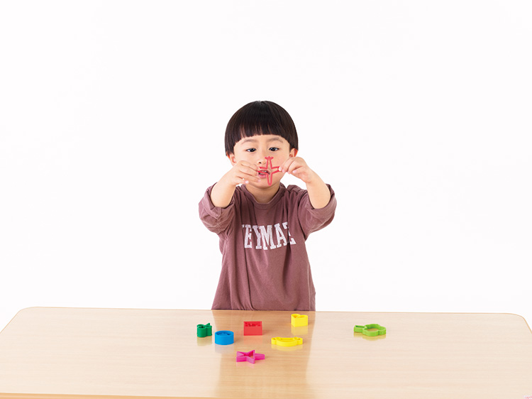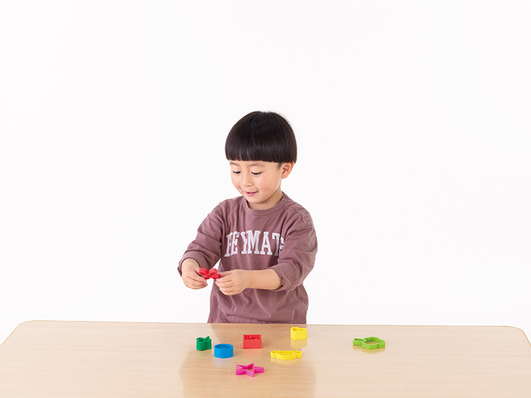 柔らかい手触りで、ずっと触っていたくなる心地よさ。くるっと返る感触も楽しい、握って、ひねって、押さえて、いろいろな形に変えて遊べます。積み上げたり、並べたり、見立てたりと、いろいろな遊びを楽しむことができます。