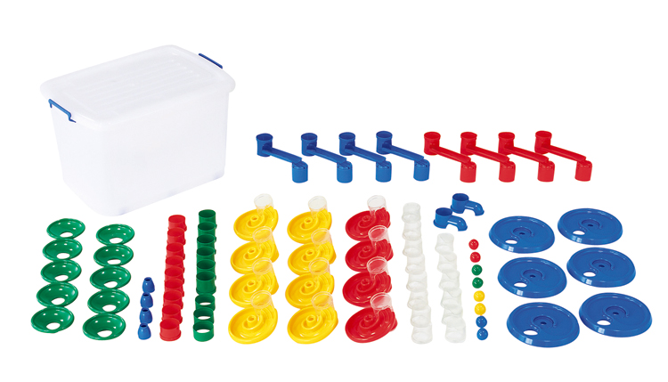 自由に組み合わせて遊べるビッグサイズの玉落としです。玉がゆっくり落ちるので、小さな子どもでも目で追いやすく、何度も挑戦したい気持ちにさせてくれます。