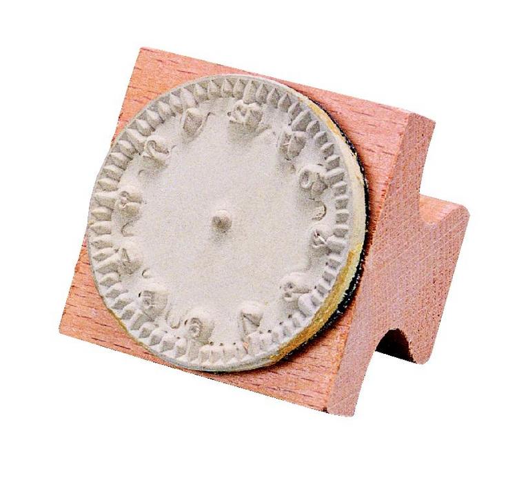 時計の絵柄をのスタンプです。これに長針・短針を自分で記入することによって、時間に対する理解を深めることができます。