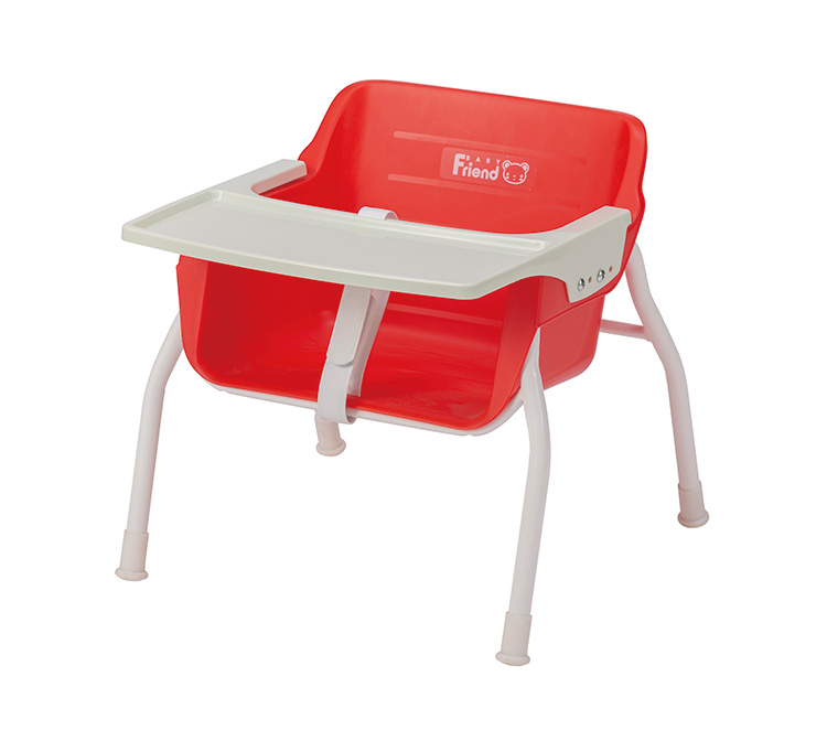 軽い設計で、幼児の滑り止めに股ベルトが付いているので安全です。前後に移動できる広い奥行きのテーブルが付いています。