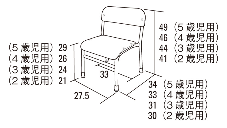 座面の高さだけでなく、座面サイズ自体をちいさくした椅子です。従来品に比べ、座りやすくなりました。背板のついたタイプです。