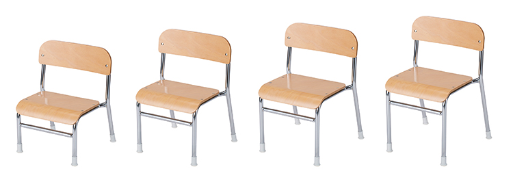 座面の高さだけでなく、座面サイズ自体をちいさくした椅子です。従来品に比べ、座りやすくなりました。