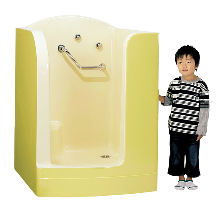 下半身や足洗い用の小型室内用洗い場です。小物置き場とベンチが付いています。排水工事が必要です。水栓は別途となります。
