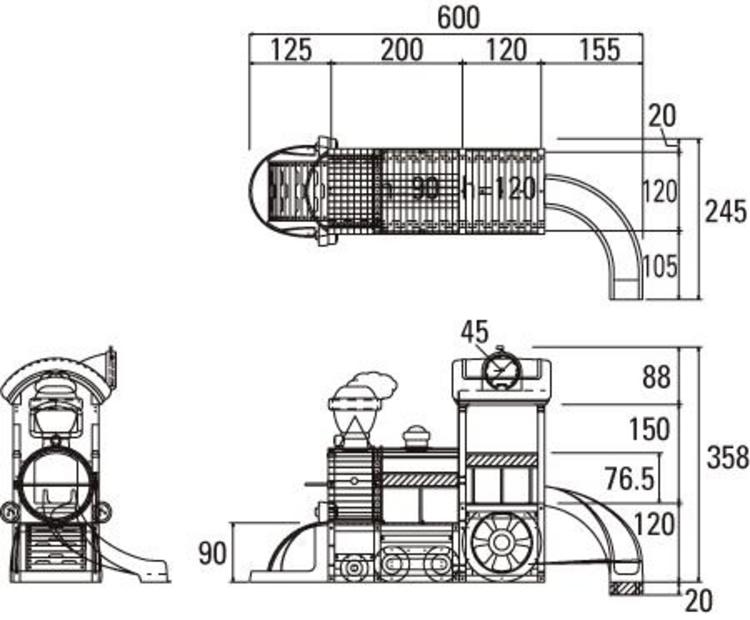 60-70519-050●材質:木製 FRP スチール●寸法:600×245×358cm●重量:950kg●その他の仕様:●構成遊具:ウッドデッキ・カウンター・スパイラル滑り台