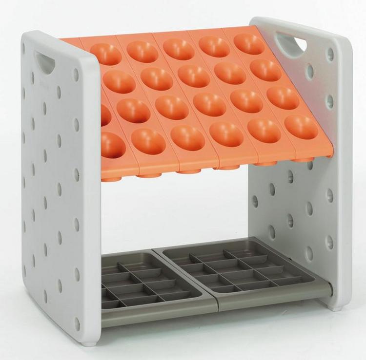 筒状のシュートに傘を1本ずつ収納するので、傘の出し入れがスムーズです。軽量で、かつ持ち運びに便利な取っ手付です。組立式