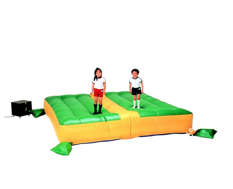 付属のブロアー(送風機)で空気を送ることで、跳んだりはねたりできるエア式トランポリンです。バランス感覚を養う運動に適しています。
