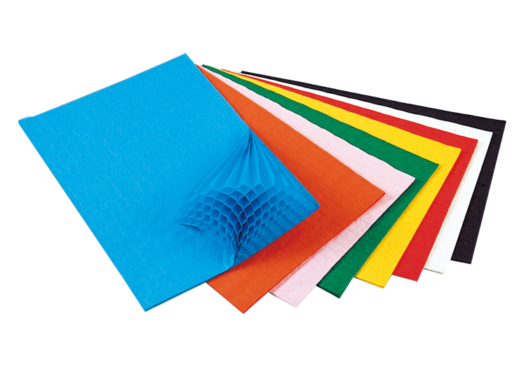 薄紙40枚を重ねばりした造形素材です。広げると蜂の巣のような形になります。切って七夕やクリスマスの飾りを作ったりするのに便利です。