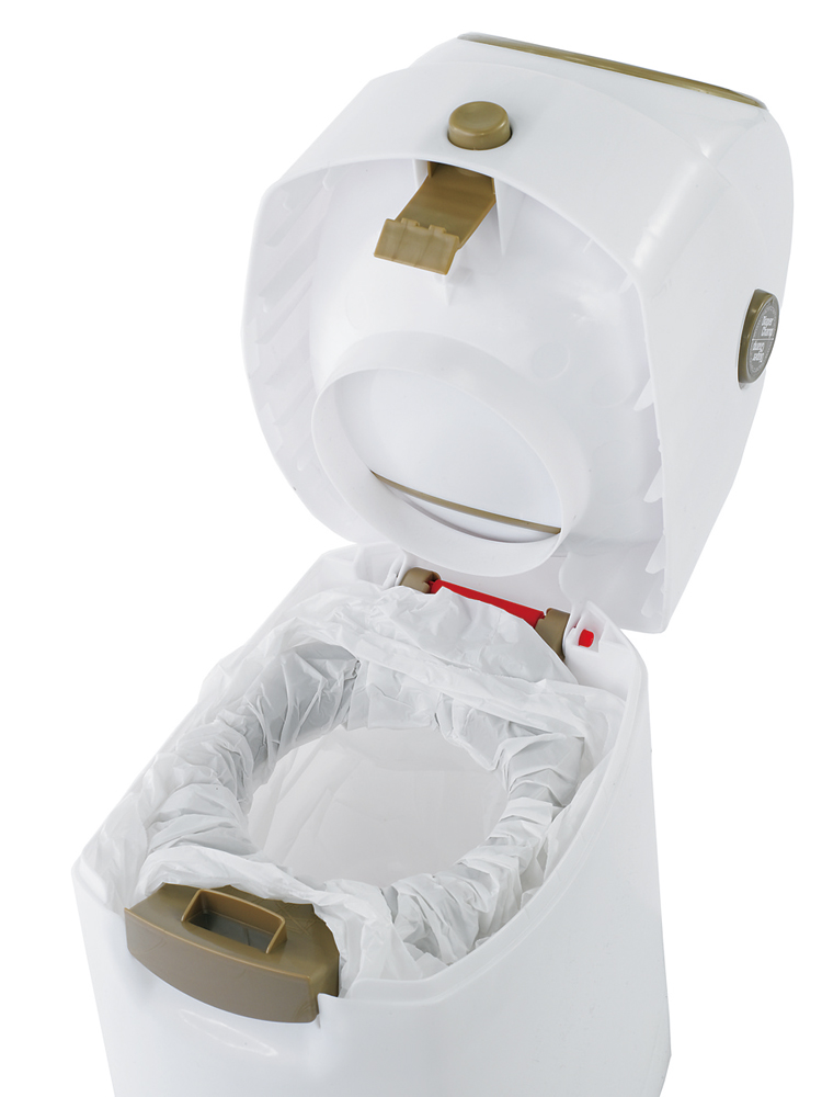 市販のごみ袋が使えます。おむつを入れてくるっとハンドルを回すだけでカンタンです。水洗いができ、分解ができて衛生的です。