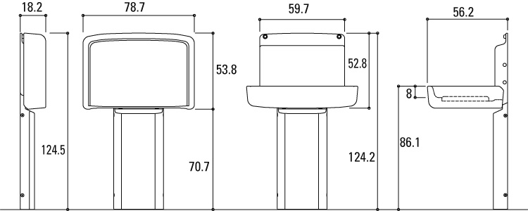 省スペースな横型タイプです。3方向がガードされているので安心です。