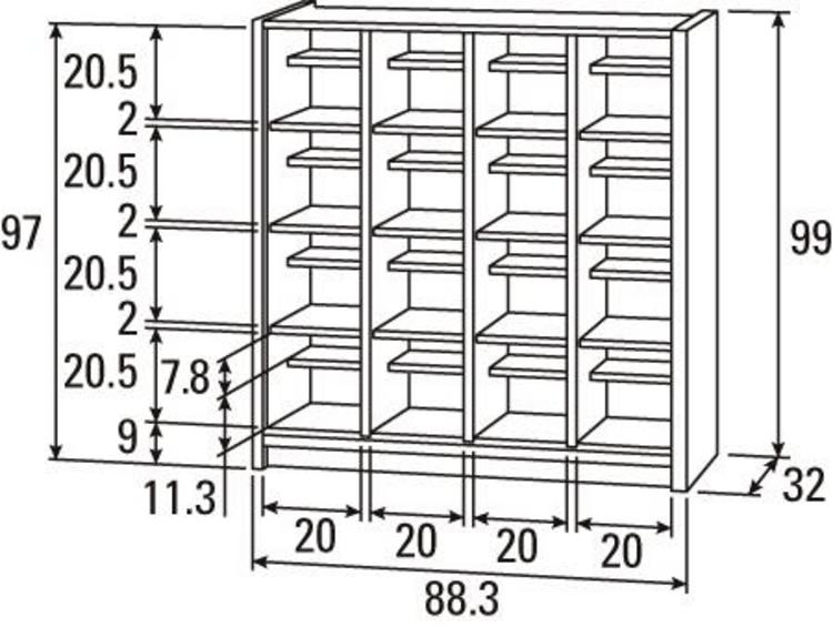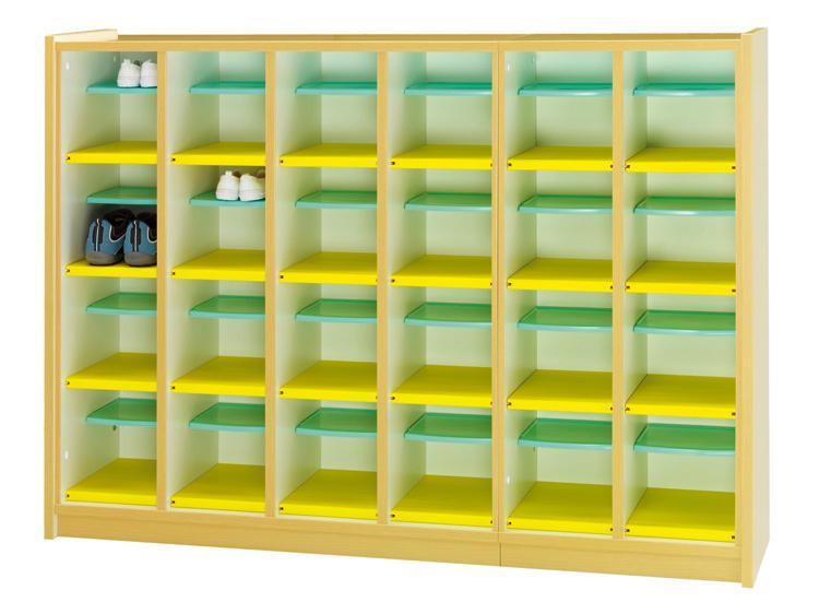 木目のシンプルなシューズ棚です。必要に応じて、後から追加することができます。1室の高さはやや大きめになっています。追加は側板(エンドパネル)を外して、ボルトで固定します。
