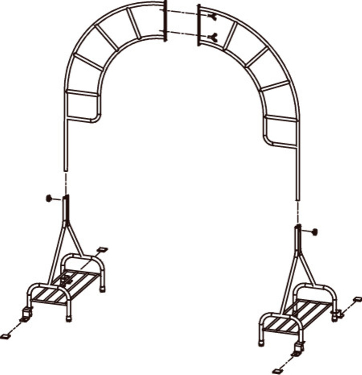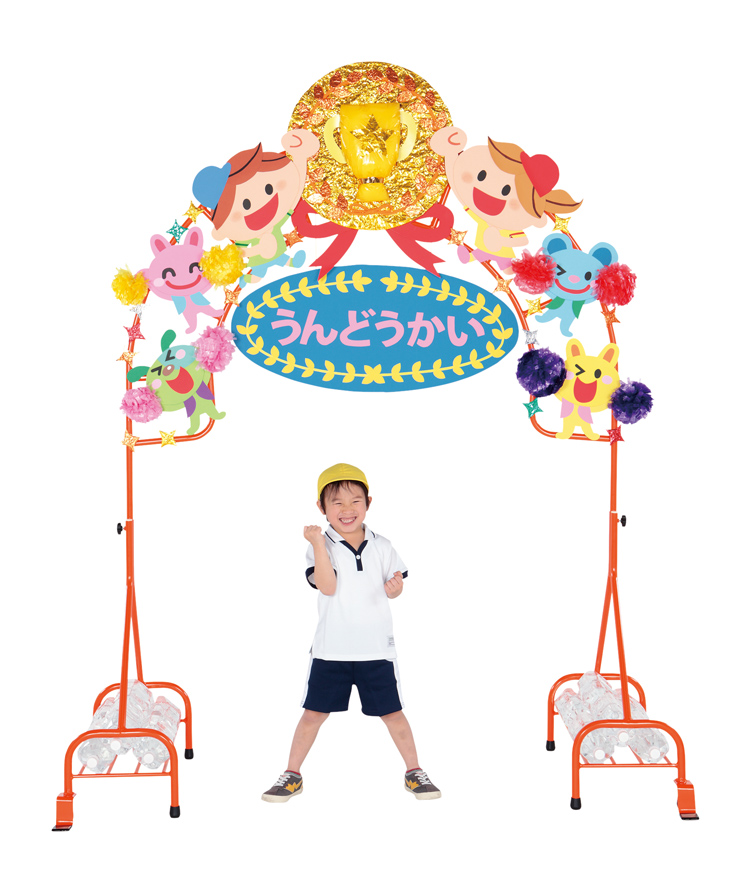 屋外でも、室内でも使えるミニサイズの入退場門です。固定ウエイトに水入り2L ペットボトルを使用することで、室内でも、ご使用いただけます。