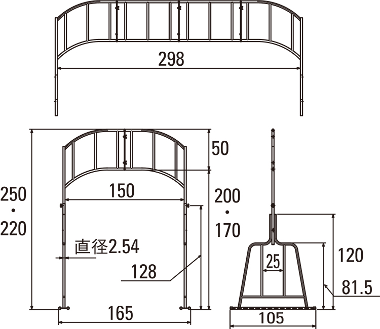 ▲高さ:高 250cm 150cm