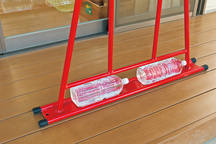 ▲室内では片側ペットボトル2本で固定 -
