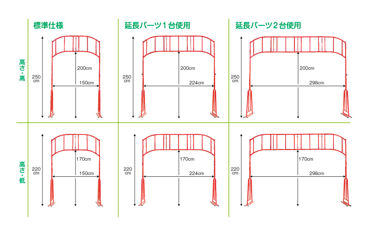 ▲延長パーツ1 台使用/高さ:低 220cm 224cm
