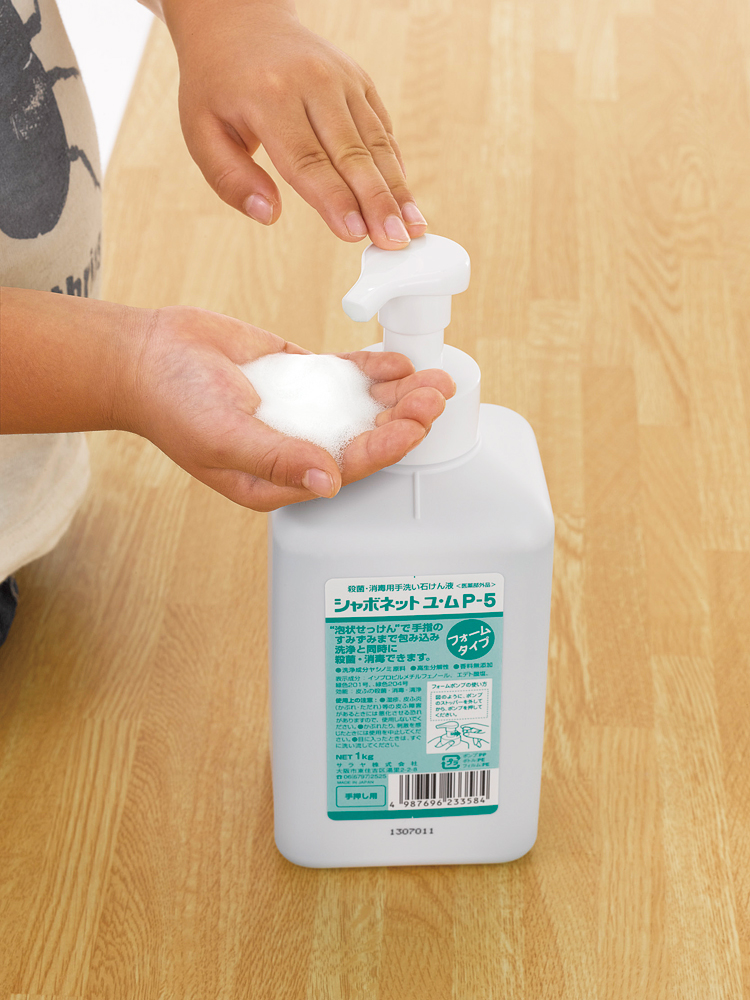 香料無添加の石けん液です。手洗いと同時に殺菌・消毒ができます。泡ポンプなので、泡立てが苦手な乳幼児や低年齢児クラスにもおすすめです。原液使用のため、希釈の手間も希釈倍率の変動も起こらず衛生的です。
