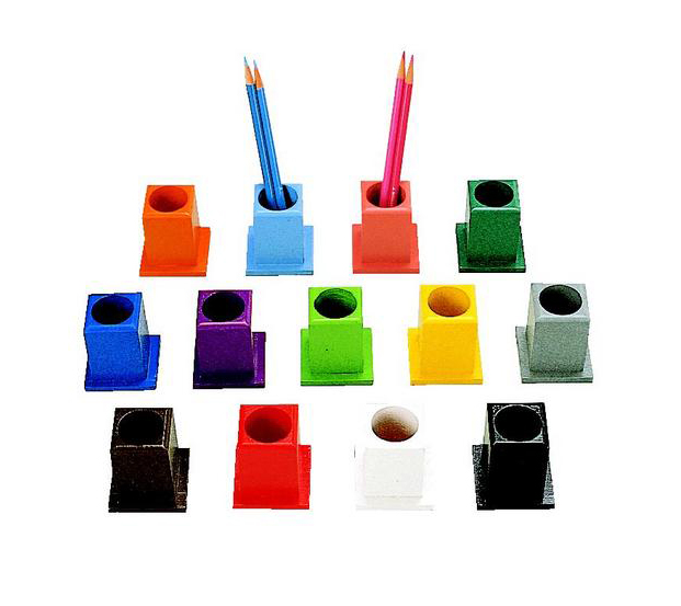 13種類に分けられた鉛筆立てで、『メタルインセッツ』の形取りや色ぬりするのに使います。