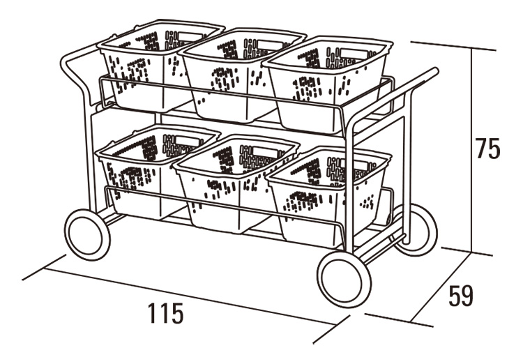 ●材質:フレーム=スチール(紛体塗装)、タイヤ=ポリプロピレン・EVA樹脂、かご=ポリプロピレン