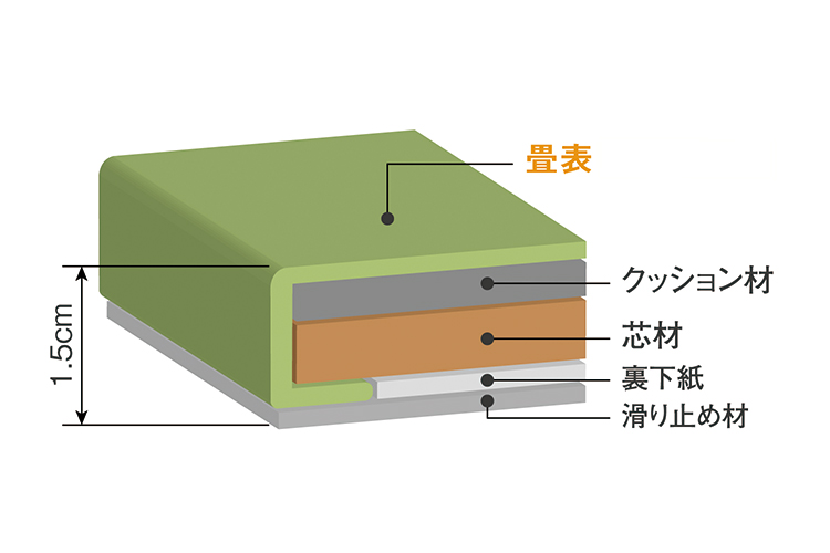 抗菌防臭機能があるポリプロピレン製のゴザシートです。コンパクトに畳めるので、使用しないときは省スペースに収納できます。