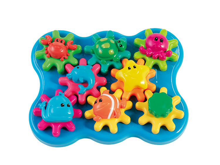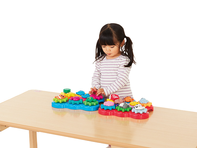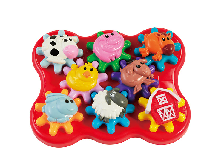 歯車パーツの上に生き物のピースを重ねて、にぎやかな農場や海の中を作りましょう。小さい子どもでも、遊びながら歯車の原理を学ぶことができ、ピースをはめ込むことで指先知育にもなります。